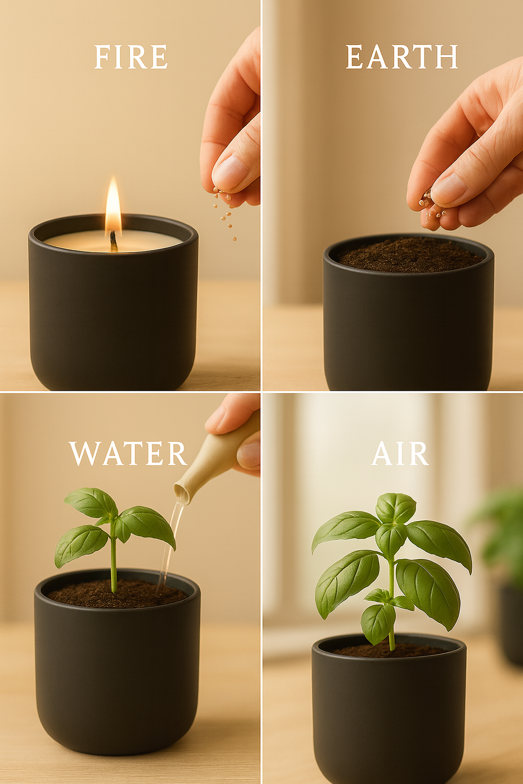 Fire, Earth, Water, Air. Experience the full cycle of nature — from warm candlelight to fresh, living growth.